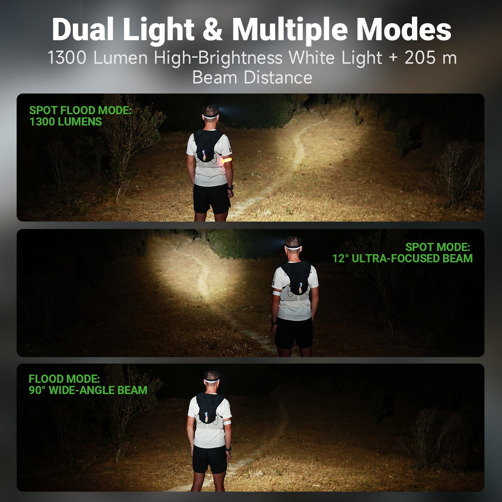 1300 lumens max output | 205m beam distance